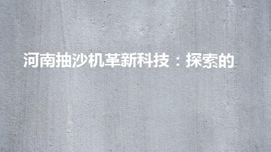 河南抽沙機(jī)革新科技:探索的未來(lái)?